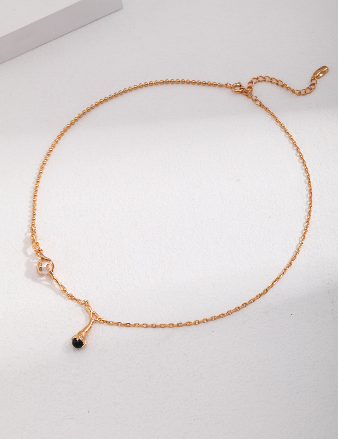Natural branches element design, the end of the branches made of sterling silver is inlaid with gemstones.