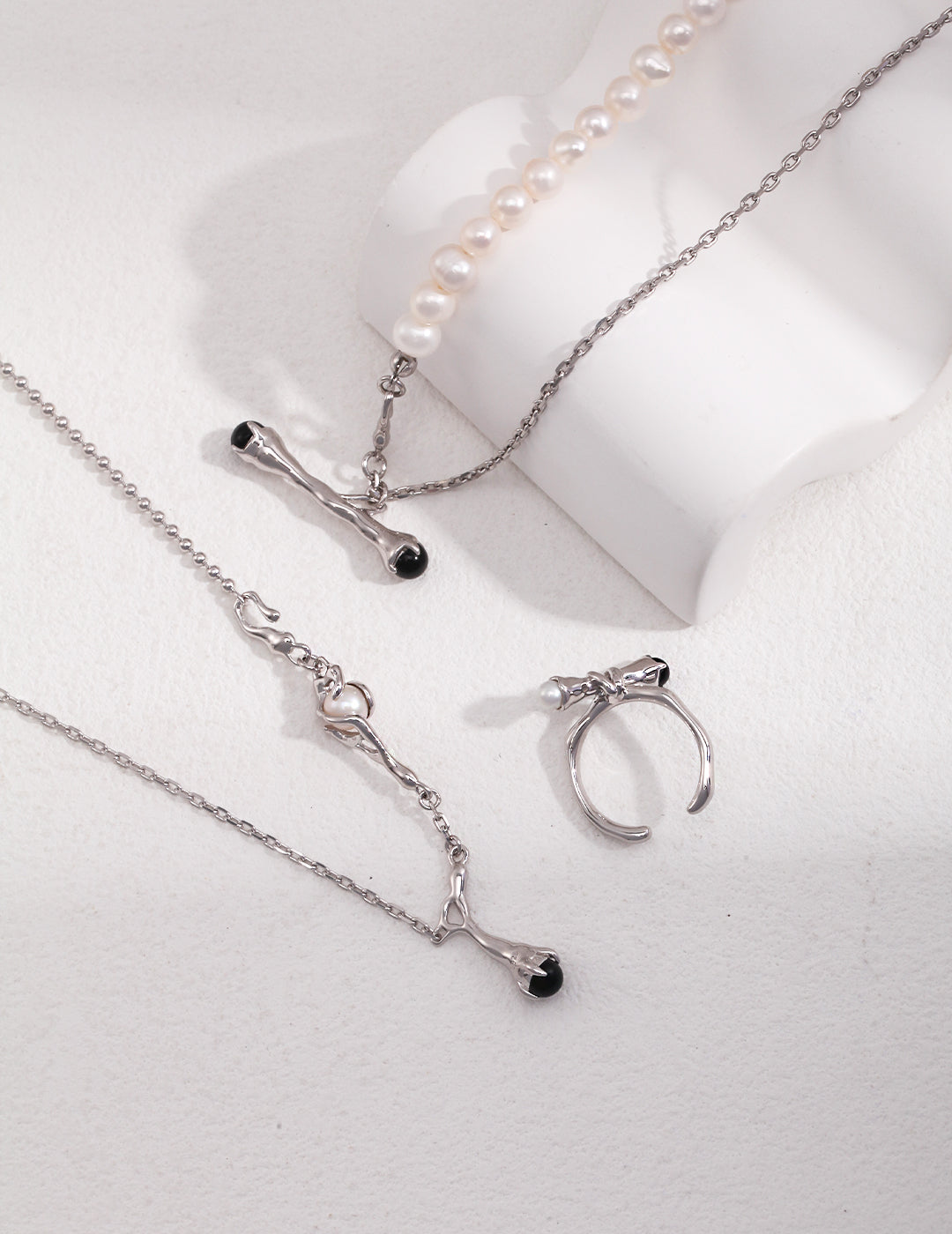 925 silver necklace (adjustable), Pure silver opening ring (adjustable), Sterling silver necklace (adjustable length can be adjusted) |