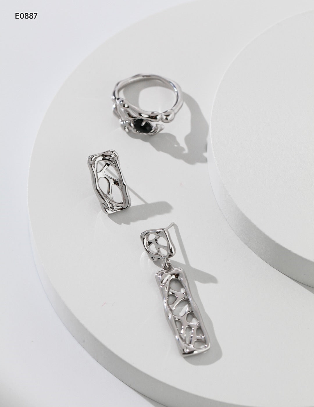 Pure silver opening ring (adjustable), Sterling silver earrings |