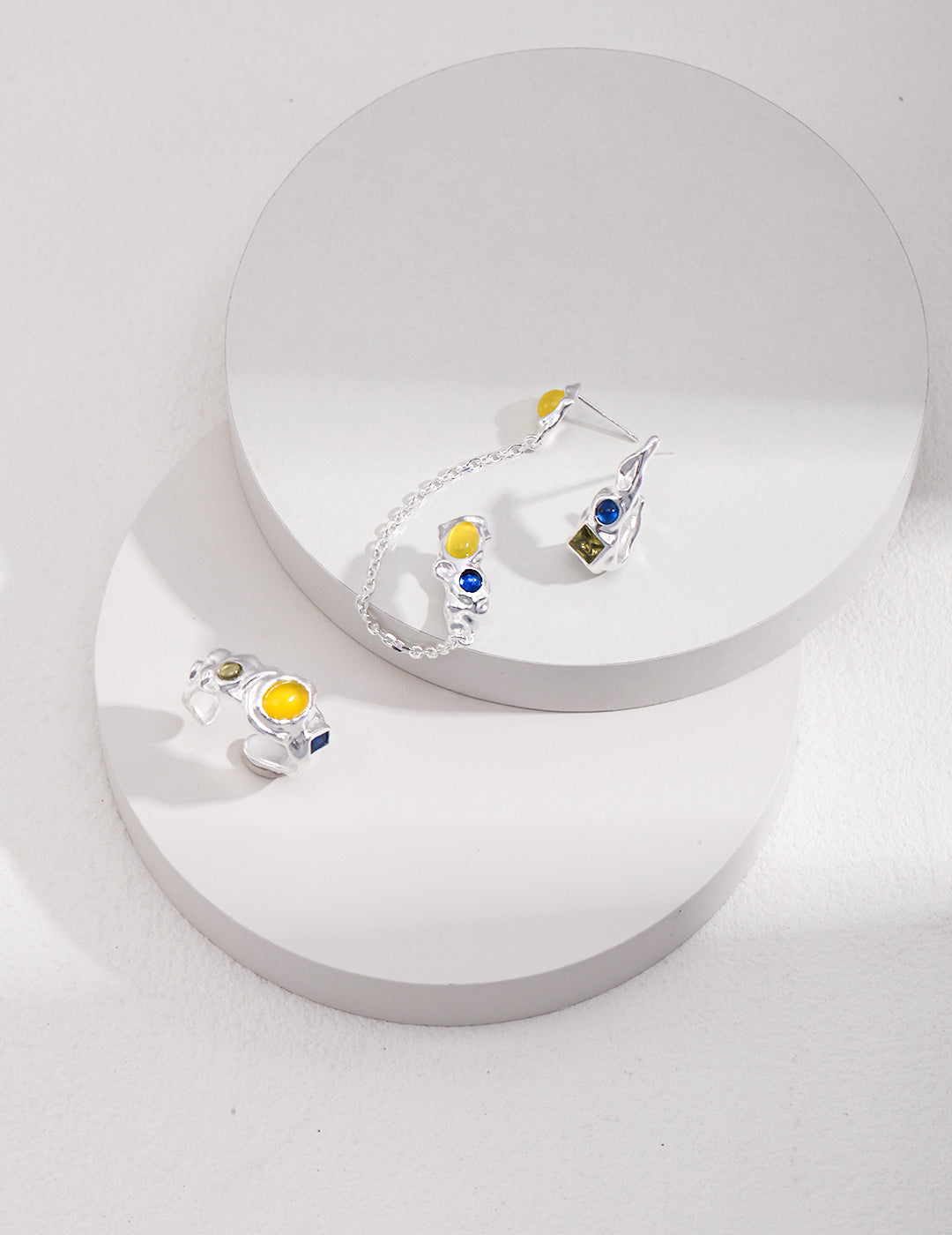 Pure silver opening ring (adjustable), Sterling silver earrings |