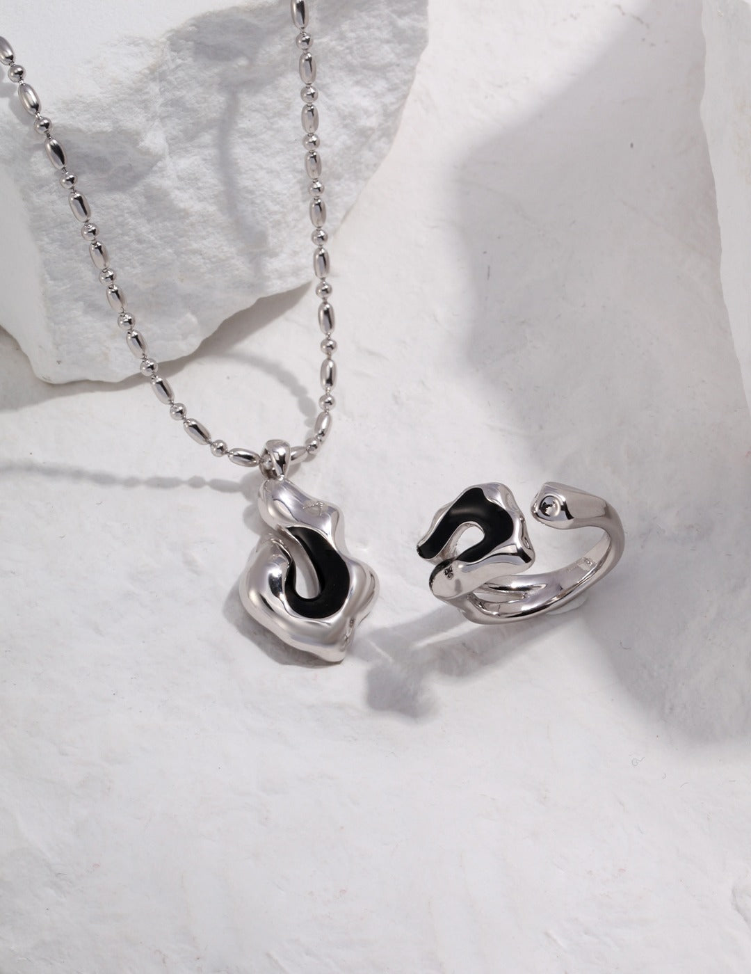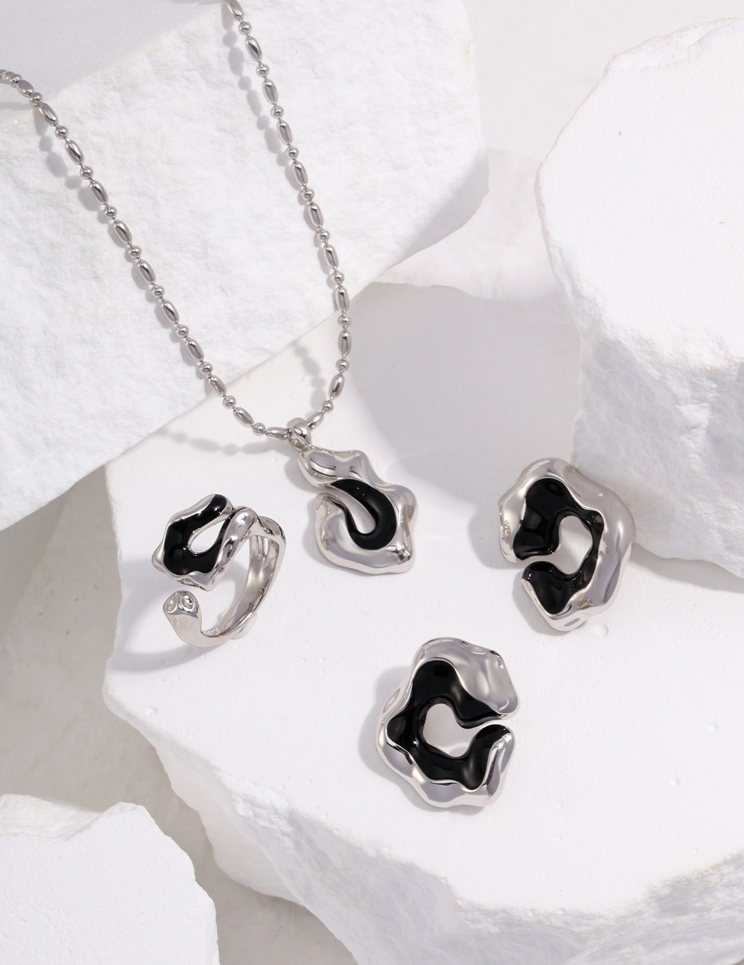 Pure silver opening ring (adjustable), Sterling silver earrings, Sterling silver necklace (adjustable length can be adjusted) |
