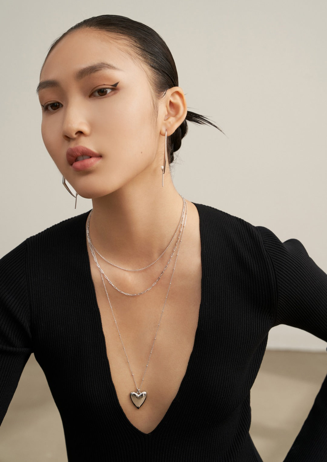 Sterling silver earrings, Sterling silver necklace (adjustable length can be adjusted) |