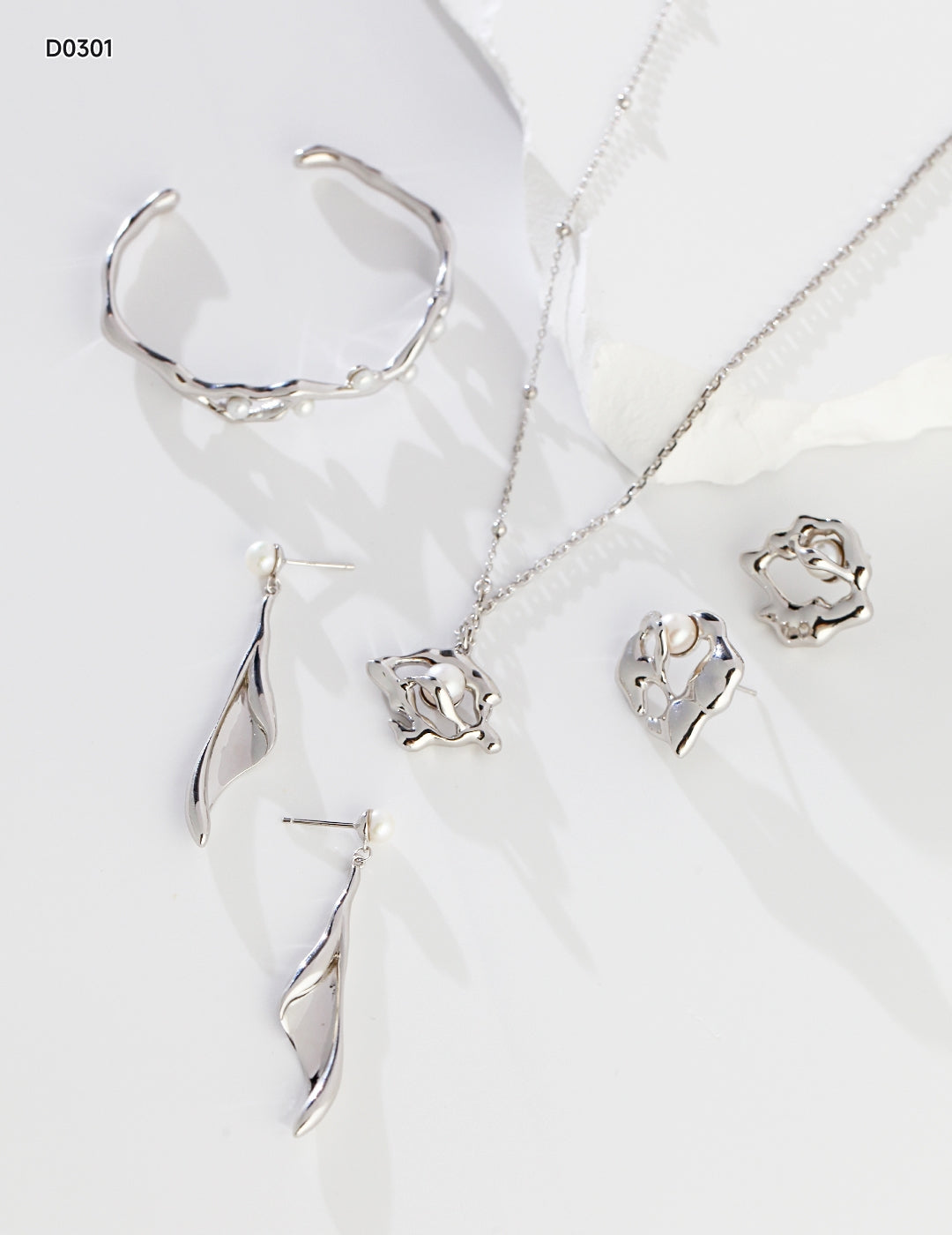 Silver bracelet (adjustable), Sterling silver earrings, Sterling silver necklace (adjustable length can be adjusted) |