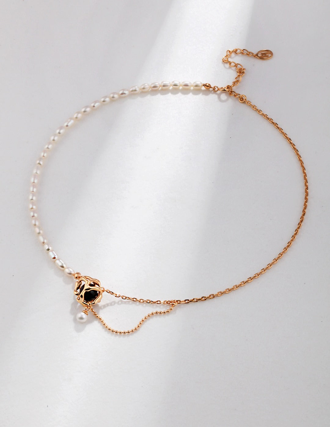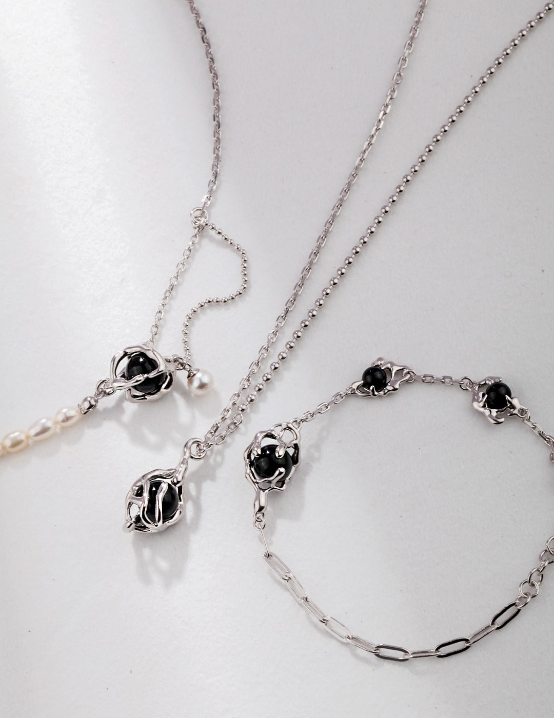 Natural fluid element design models, natural droplets black agate inlaid in the claws of the fluid of the silver flow body, silver is closely wrapped in gems, like natural guardians, protecting the core of the design.