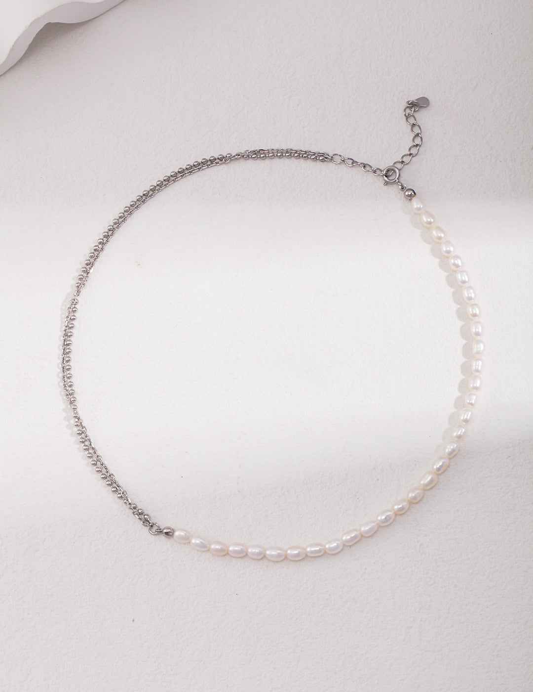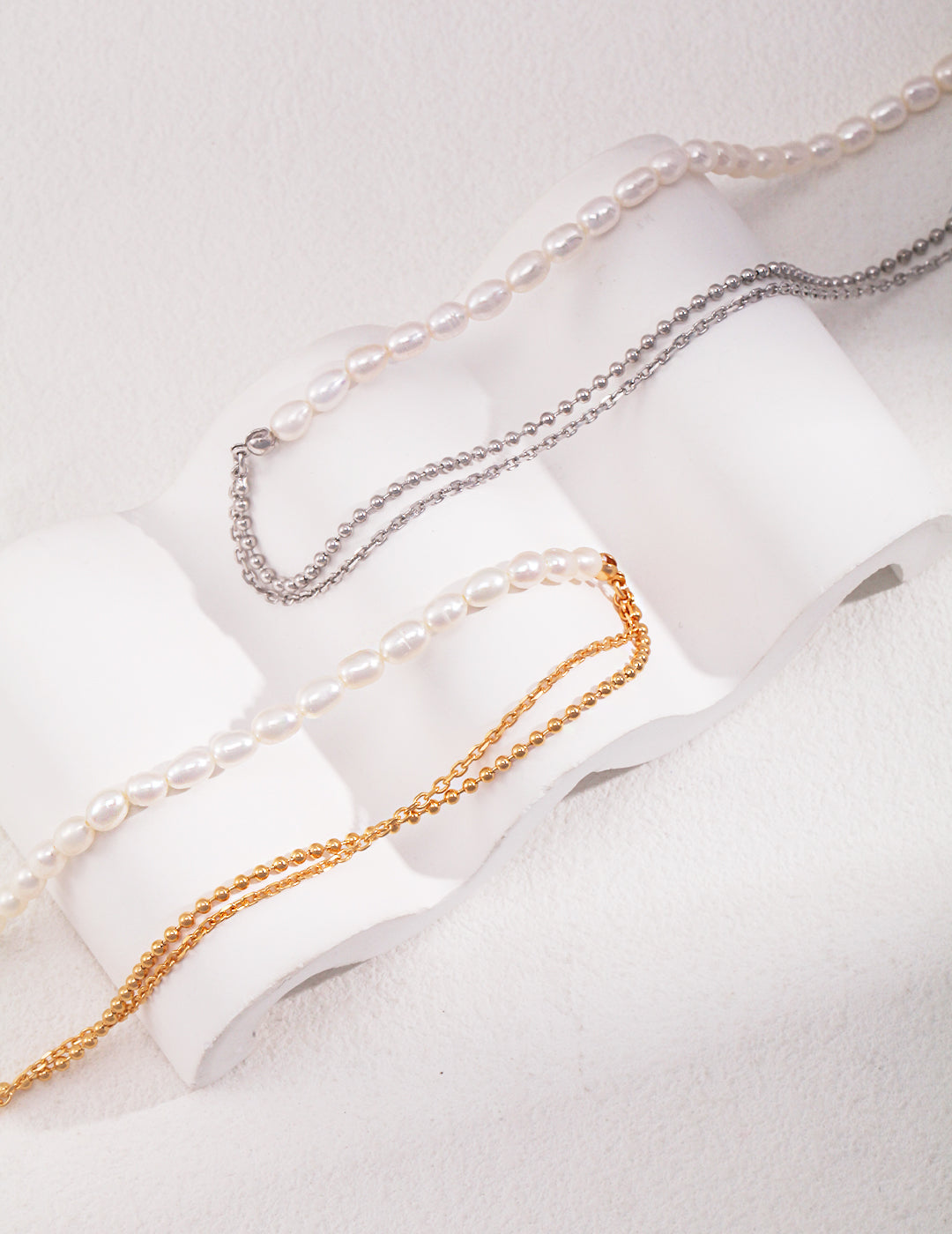 Natural pearls with dual silver chains are fashionable and simple, with specially designed oval -wound texture design.