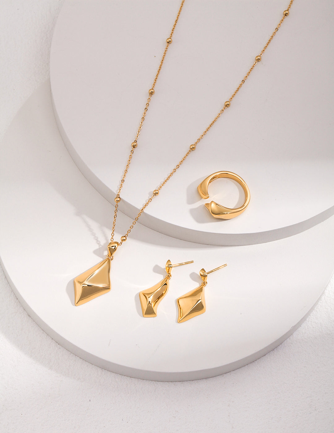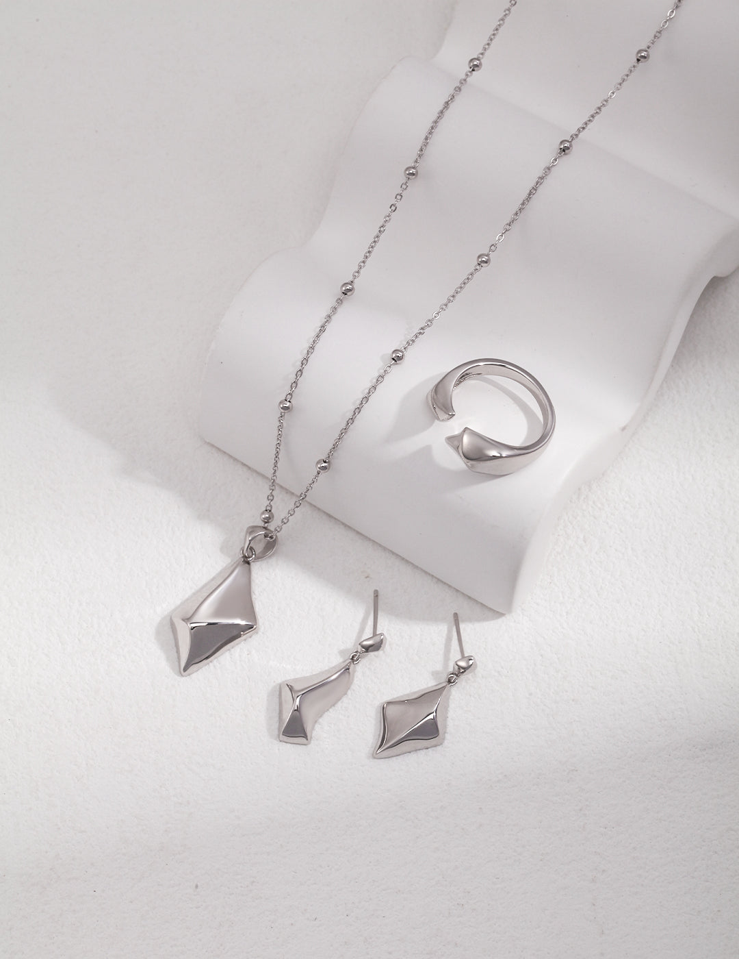 Pure silver opening ring (adjustable), Sterling silver earrings, Sterling silver necklace (adjustable length can be adjusted) |